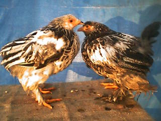 | ブラマ (ライト オールドコロンビアン型) | オールドコロンビアン型は劣性 蓑羽に黒条線有り 羽根色が濃い 雌はライト×ゴールド ブラマ (ライト オールドコロンビアン型) | 上と異なる系統 換羽終了して奇麗 産卵再開間近 ブラマ (ライト オールドコロンビアン型) | 上の仔 若鶏なので未だ肉は多くないが 骨格は大きい ブラマ(ライト コロンビアン型) | コロンビアン型 ブラマ(ライト コロンビアン型 雛) | 1羽ライト 2羽バフ(背中の黒斑が無い) ブラマ(ゴールドダーク) | 最近作られた内種 初産が近い ブラマ (シルバーダーク) | S/sのヘテロです 箕羽が黄色味を帯びています ブラマ (シルバーダーク) | 体色の差があります 黒っぽいのと白っぽいのがいます それぞれにS遺伝子のヘテロとホモがいます ブラマ (シルバーダーク) | 3羽の母親から生まれました 父親は2羽(ライトとダーク)です 宮古島で育っています ブラマ(交配種) | バフコロンビアンの原種 雌は赤い 雄は白い 手前のチャボと比較して下さい ブラマ(バフコロンビアン) | 上の雄の仔 母親は異系統2羽 ブラマ(バフコロンビアン) | 上の雌雄の仔雄 脚毛が豊か 近交系なので相手に異系を望む ブラマ(バフコロンビアン) | 上の成長した姿 肉鶏の研究に使っています ブラマ(バフコロンビアン) | 羽色が薄い仔雄 未だ大雛(中雛?)ですが将来が楽しみ ブラマ(ブルー) | コーチンとの交配種 他のブラマの半分の大きさ ブラマよりコーチンに似ている ブラマ(シルバーダーク) | 左はノーマル 中はバンタム×ノーマル 右はバンタム ブラマバンタム(シルバーダーク) | 雄で1kg程度 大きいブラマが飼えなくても平気 |